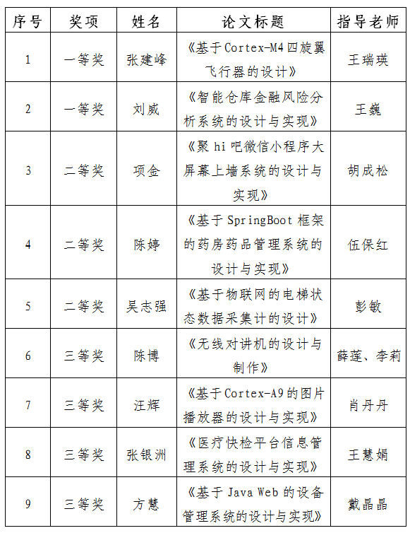 新闻中心讯(特约记者喻晓)5月22日,由武汉民办高校信息学科合作联盟组织的“2019年五校优秀本科毕业(设计)论文联合答辩”在武汉东湖学院举行,来自武昌工学院、必赢国际437官网、武昌理工学院、武汉设计工程学院、武汉东湖学院5所高校信息工程学院推荐的47名应届优秀毕业生参加答辩,必赢国际437官网共有9名学生参加,其中学生张建峰的论文《基于Cortex-M4四旋翼飞行器的设计》、学生刘威的论文《智能仓库金融风险分析系统的设计与实现》获得联合答辩一等奖。