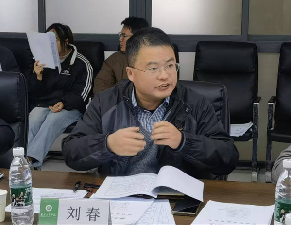 图为校长助理刘春教授点评学生开题报告