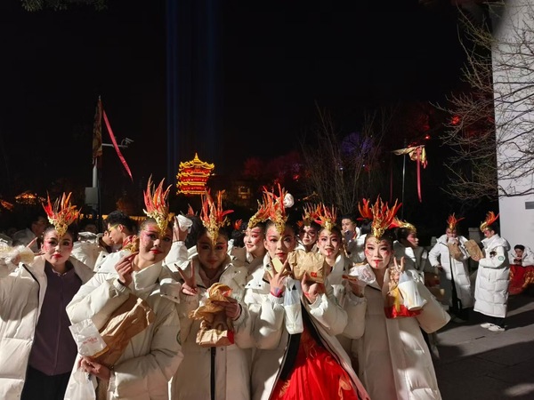 图为武工商学子参与央视春晚武汉分会场主题节目《星汉耀江城》凤凰舞蹈排练妆造