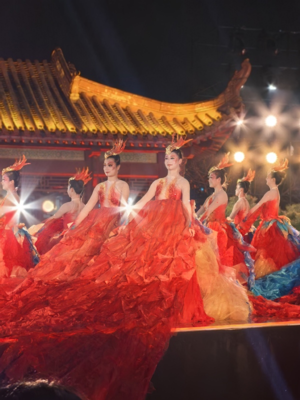 图为武工商学子参与央视春晚武汉分会场主题节目《星汉耀江城》凤凰舞蹈录制