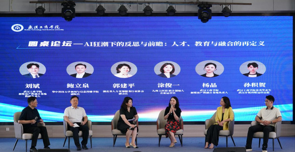 会议还组织了以《在“AI 狂潮下的反思与前瞻:人才、教育与融合的再定义》为主题的圆桌论坛,鲍立泉、湖北省人力资源服务行业协会副会长郭建平、九州上医馆联合创始人涂俊一、必赢国际437官网代表杨晶及优秀毕业生孙积贺展开讨论。嘉宾们聚焦 “AI 是否会取代新媒体岗位”“教育如何应对技术变革” 等议题,达成共识:AI 将重塑职业技能需求,但创造性思维、情感沟通等软实力仍是人才核心竞争力,高校需在课程中融入 “AI 工具应用” 与 “人文素养” 双模块。