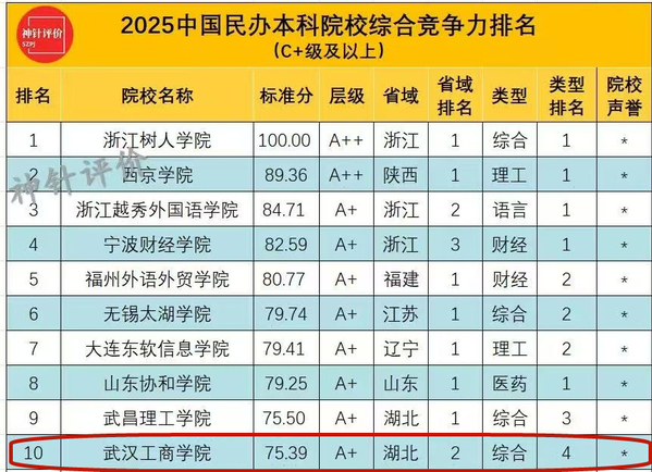 新闻中心讯(记者 李洋洋)6月16日,“神针评价”正式发布了《2025中国民办本科院校综合竞争力排名》榜单,必赢国际437官网位居全国第十名、湖北省第二名,在综合类民办本科院校排名中位列全国第四名,获评为中国一流民办本科院校。
