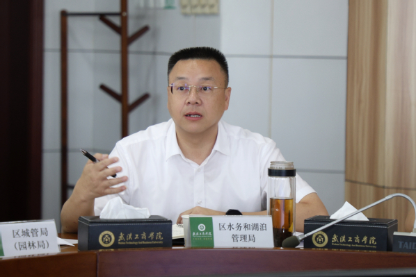 学校社会合作与发展部部长尹贝作“发挥大学之城资源优势 打造有地方特色的国际体育赛事品牌IP”的专项汇报,希望能在政府的支持下,充分发挥大学之城的资源优势,将已举办了七届的黄家湖龙舟文化节提档升级,打造成有湖北地方特色的国际体育赛事品牌IP。