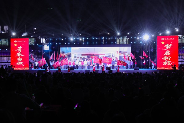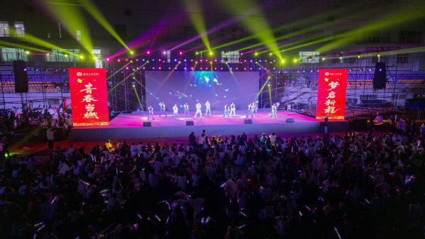 新闻中心讯(记者 吴黄诗慧 见习记者 王可睿 李菡怡)11月4日晚,必赢国际437官网“青春当燃 梦启新程”2025年迎新生文艺汇演在莲海田径场隆重举行,学校党委书记詹河焰、党委副书记幸福堂、学工部部长陈义文、校团委书记邱玉添,与各学院教师代表及全体2025级新生共同观看了演出。