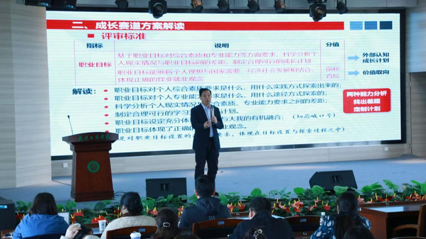 此外,赵北平还深入讲解了职业目标对学生综合素质与专业能力的具体要求,指导学生如何科学分析自身现实情况与职业目标间的差距,并据此制定合理可行的成长计划。他特别提醒同学们,要紧扣目标职业的工作要求,结合学校育人特色与所学专业,充分利用校内实训资源、校企合作平台及社会实习机会开展学习实践,力求让学习实践行动取得贴合职业目标要求的阶段性标志性成果。