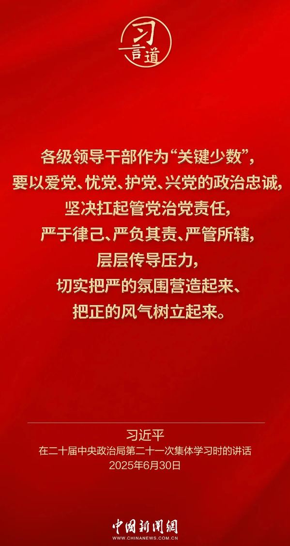 12月1日出版的《求是》杂志发表中共中央总书记、国家主席、中央军委主席习近平的重要文章《推进党的自我革命要做到“五个进一步到位”》。这是习近平总书记2025年6月30日在二十届中央政治局第二十一次集体学习时讲话的主要部分。我们梳理了总书记的部分论述,邀您一起学习领悟。