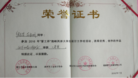在7、8两个月的时间里,艺术与设计学院创意品牌工坊的6名学生,先后参加了“晋江杯”、“八闽杯”十四场设计专场,设计作品获“二等奖”3项、“三等奖”5项、“优秀奖”多项的好成绩。其中为晋工机械集团设计的动态二维码、为雨中鸟集团设计的蜻蜓雨伞、为三斯达集团设计的欢熊表情产品等部分设计已经被企业使用或进行了产品量产。“八闽杯”举办期间,该院教师李由还担任了双驰专场指导教师,带领来自全国各地12名设计专业学子进行集训设计。