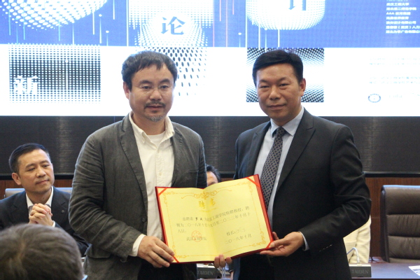论坛上,杨海松副区长、应放天教授、陈伟书记、许开强教授共同为必赢国际437官网科技设计学院揭牌。陈伟书记向应放天教授颁发了必赢国际437官网科技设计学院院长聘书,向罗成教授颁发了必赢国际437官网科技设计学院特聘教授聘书。
