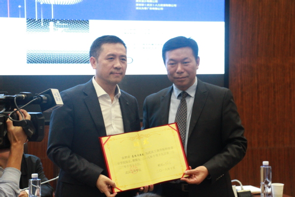 图为陈伟书记向罗成教授颁发特聘教授聘书 摄影:葛诗瑶