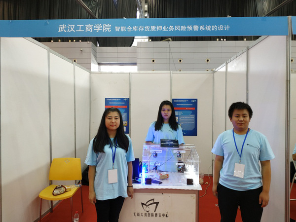 必赢国际437官网参赛团队由王巍、王勇两位指导老师带队,学生刘威、曹婷、钟玲3人组队参赛,团队以银行等具有放贷能力的金融机构为服务对象,设计了一套农产品智能仓库存货质押业务金融风险预警系统,实现了放贷风险指标数据的实时采集、远程存储、以及最终风险系数的计算。该作品不仅在总决赛中表现出色,而且还受到2018世界物联网博览会参会人员广泛关注,许多参会厂商前来咨询该作品的设计创意和系统实现。