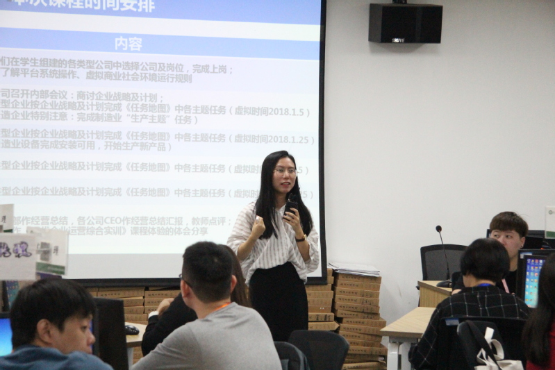 图为周诗雅老师正在介绍企业实训课程 摄影:王豪