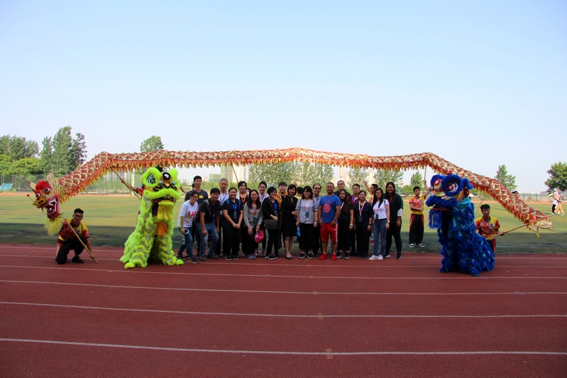 图为学员们与龙狮队合影 摄影:邓太莎