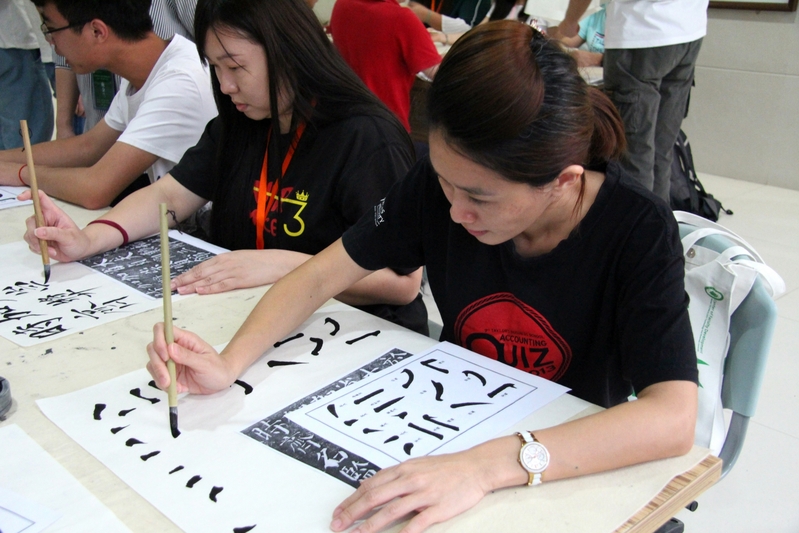 图为学员正在练习写书法 摄影:邓太莎