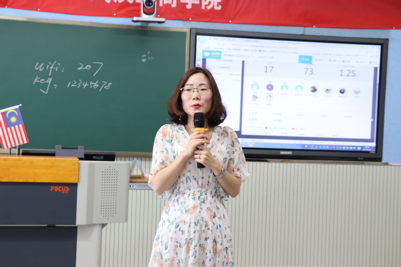 随后,陈敏主任介绍了本次研习班培训课程安排,课程针对马来西亚华文独中商业学教师的需求,主要围绕工商管理、电子商务、物流管理等与商业学教学相关的内容进行设计,同时加入了BOPPPS教学法课程模块,其中包括三次应用型实训体验课。