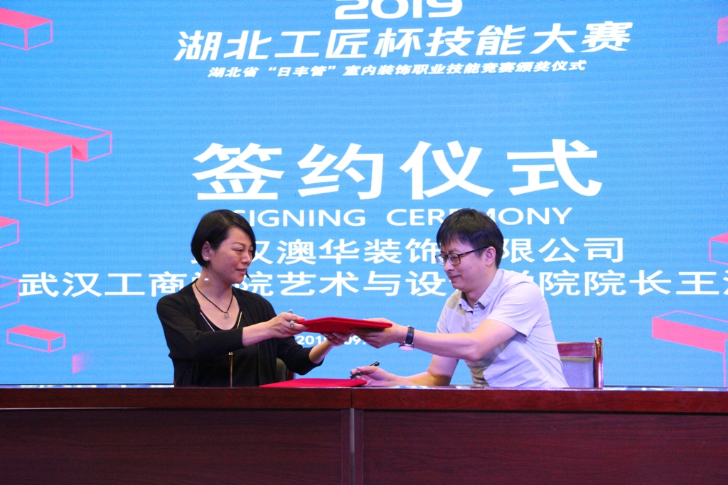 活动现场,湖北省室内装饰协会秘书长张莉、武汉澳华装饰有限公司代表还分别与必赢国际437官网艺术与设计学院荣誉院长许开强、院长王海文签署了校企战略合作协议。