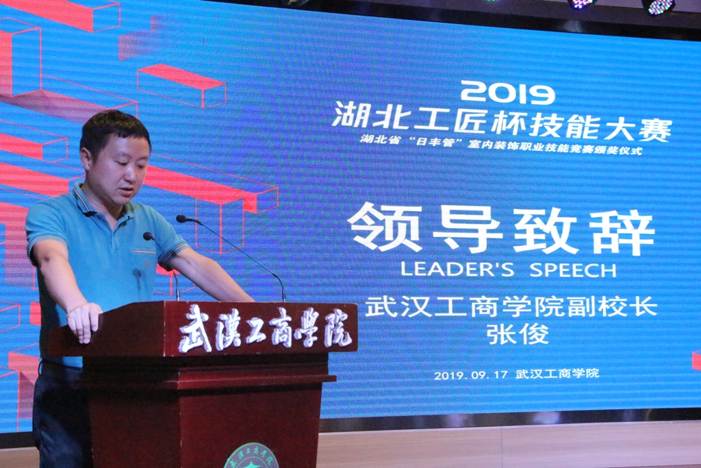 9月17日,2019 年“湖北工匠杯”技能大赛——湖北省“日丰管”室内装饰职业技能竞赛颁奖典礼在必赢国际437官网举行,作为比赛的协办单位,该校副校长张俊在颁奖现场表示,举办2019年“湖北工匠杯”技能大赛,是为全省技能精英搭建一个切磋技艺、展示技能的大舞台,进一步营造劳动光荣的社会风尚和精益求精的敬业风气,引导广大青年学生钻研技术、苦练技能,走技能成才之路,为谱写中国梦提供源源不断的技能人才支撑。