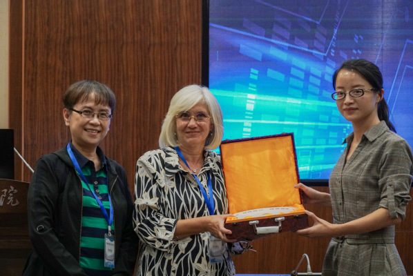 图为老师向Marherit Mori教授赠礼 摄影:谭艳