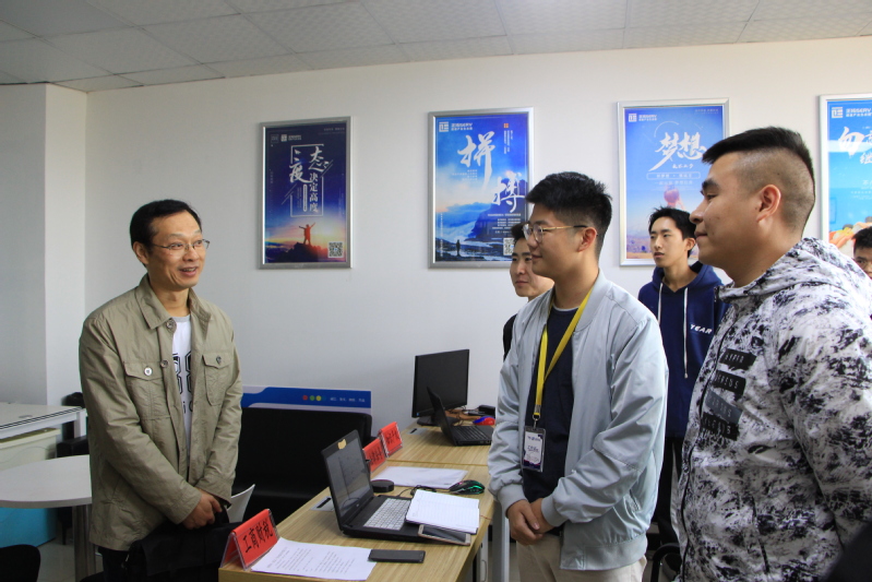 图为:王绍斌副处长询问我校学生创业情况并寄予希望和鼓励 摄影:张焰