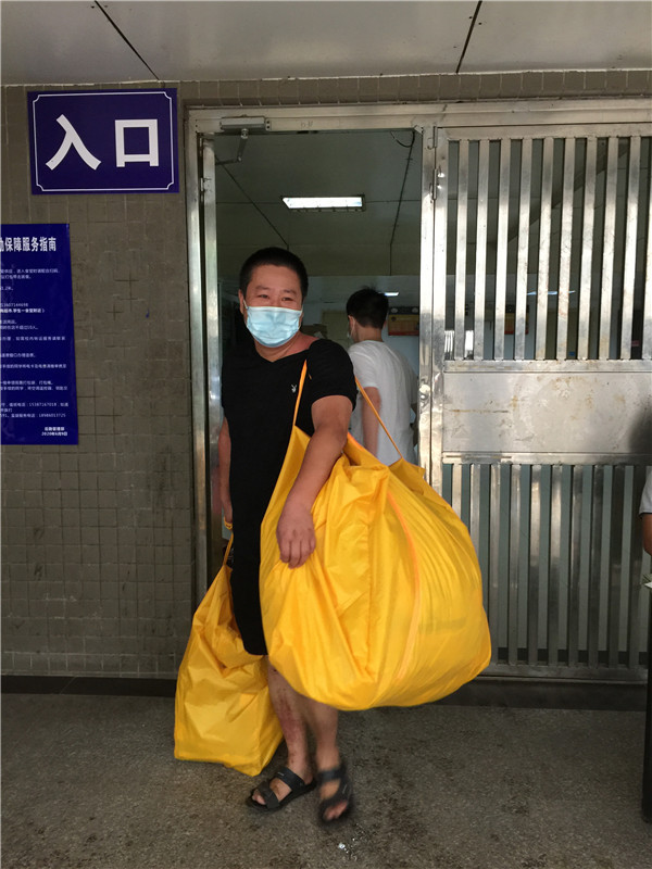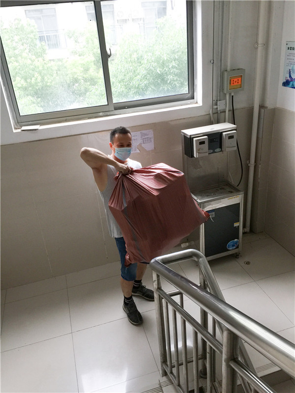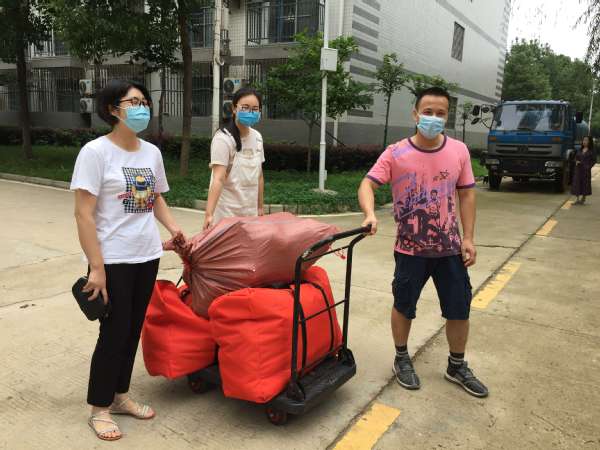 同时,学校还组织了一支近百人的教师志愿者队伍,奔赴武汉各车站接送毕业生,在校园里搬运毕业生的行李至寄送点或校门口。学校信息中心职工彭烈华是志愿者服务队中的一员,一大早他就在宿舍楼帮毕业生将行李送到学校快递点,一天下来,他上下宿舍楼搬运了50多趟,大汗淋漓,衣衫尽湿。“在这个有些不一样的毕业季,我们更要为学子们做好服务。”