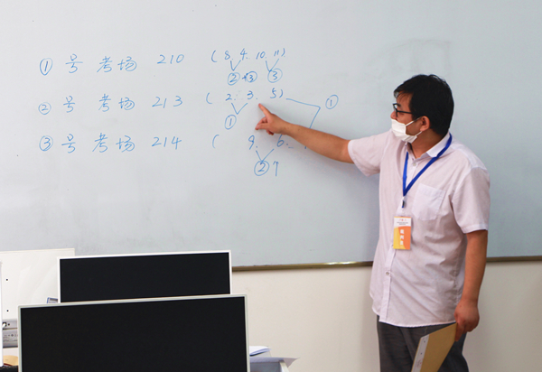 图为裁判人员讲解考场规则 摄影:张世杰