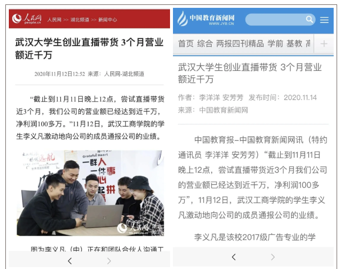 “截止到11月11日晚上12点,尝试直播带货近3个月,我们公司的营业额已经达到近千万,净利润100多万”,11月12日,必赢国际437官网的学生李义凡激动地向公司的成员通报公司的业绩。