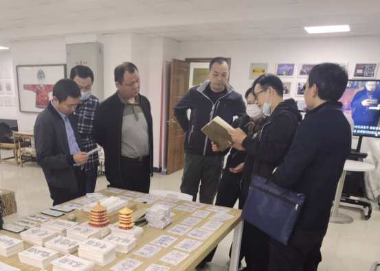 之后参观了“字绘中国”、“非遗汉绣”等师生共创项目,艺术与设计学院王海文院长为他们进行了详细介绍。
