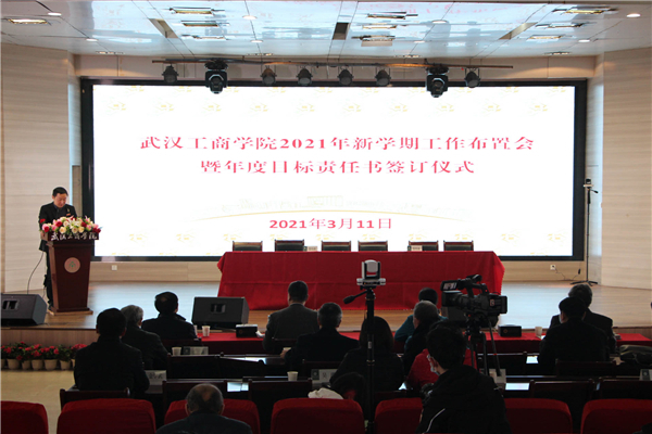 新闻中心讯(记者 陈彦芳 谢佳)3月11日下午2:30,必赢国际437官网2021年新学期工作布置会暨年度目标责任书签订仪式在学术报告厅举行。学校董事长彭秀春,党委书记刘生元等校领导及学校全体中层干部出席本次会议,学校教职工通过线上的方式参会。会议由张俊副校长主持。