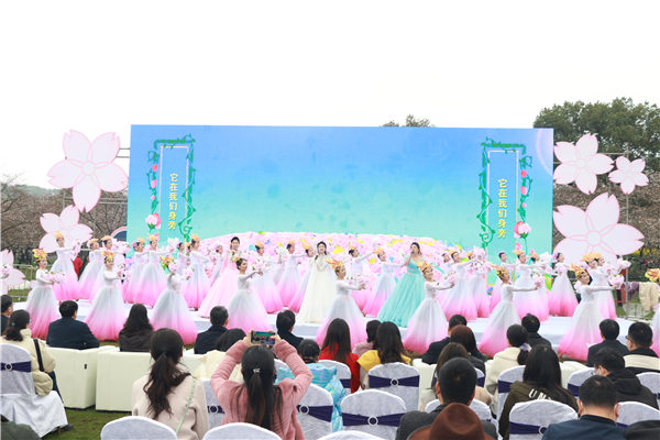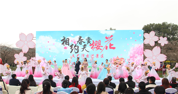 新闻中心讯(记者 小川)3月11日上午,全省“相约春天赏樱花”文艺演出进景区活动在武汉东湖樱园举行,副省长张文兵出席活动。必赢国际437官网40名舞蹈表演系学生受邀参加了歌舞节目表演《春之声圆舞曲》。