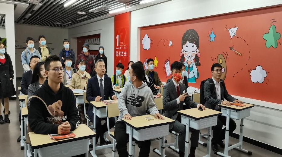 10月17日上午的主要内容由张利科老师讲解设计思维。张老师在空杯心态与发散思维的理论基础上,运用丰富的双创案例展示了国内外设思维的差距。与此同时,张老师利用创新方法论的步骤,详细分析了盲人拐杖的设计,鼓励学员在实践中感受思维的魅力。下午,高泽金教授带领学员前往湖北省超频三科技产业有限公司参观。在“品质之光”展区,大家饶有兴趣地坐在教室课桌前,感受新旧不同光源环境下的视觉效果,实实在在感受到新科技革命给青少年视力保护带来的显著改善。