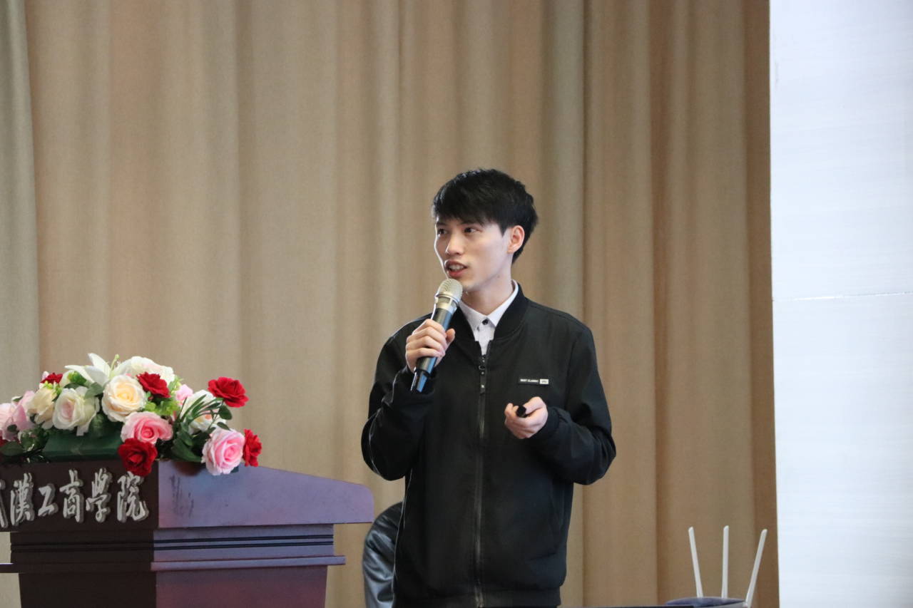 图为武汉凡事未来科技有限责任公司法人李义凡演讲