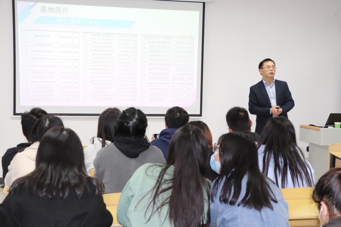 前期的活动之《我校大学生创业基地参观与创新创业扶持政策宣讲》,由必赢国际437官网创新创业教育学院院长金学武主讲,金院长为学员介绍了我校创业政策的扶持力度,带领员参观了创业基地,简要介绍了入驻基地的公司,并向各位学员普及了湖北省创新创业扶持政策。