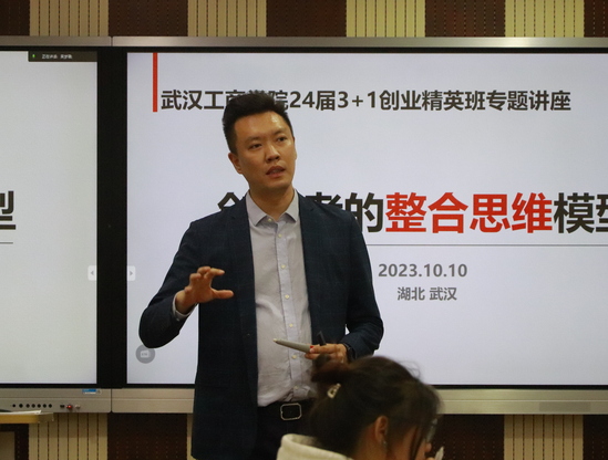 (新闻中心讯 特约记者钱亚妮)2023年10月10日下午2:00,创业学院特邀著名创业导师、投资人、武汉理工大学李鹏教授,进行《创业资源整合》专题讲座,此次活动在艺术楼智慧教室225举行。参与本次活动的有创业学院老师吴梦璐、2024届“3+1”创业精英班全体同学和双创联合会部分同学。