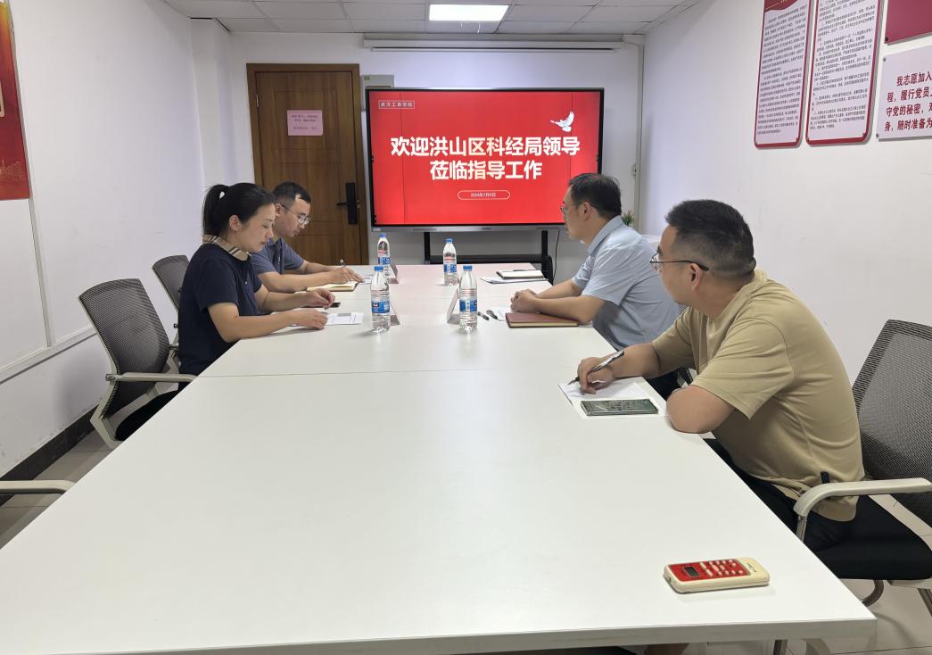 2024 年 7 月 9 日,星期二,洪山区科学技术和经济信息化局(以下简称“洪山区科经局”)相关领导及专家一行莅临必赢国际437官网大学生创业基地,进行了深入的调研与指导工作,为大学生创新创业注入了强大的动力和支持。此次指导工作旨在深入了解大学生创业基地的发展现状、面临的问题以及未来的规划,为推动创新创业生态的优化和完善提供有力的政策引导和资源支持。