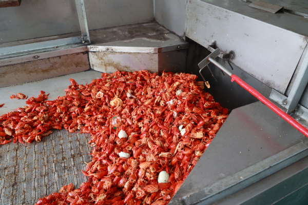 图为虾壳处理中 摄影:余冰燕