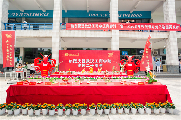 学校党委副书记左宗文介绍,5月21日是小满节气,情满意也满。在学校建校20周年之际举办校庆餐活动,充分体现了学校一直以来“以生为本”的办学理念,打造“武工商一家人”的温馨家园文化,师生共品“家宴”、共庆华诞、共谋发展。此次的小龙虾是由潜江市直供,得到了潜江市政府和相关企业的大力支持。学校将产教融合贯通人才培养全过程,打造校企协同育人新模式,2012年潜江市政府就与学校签订了战略合作框架协议。