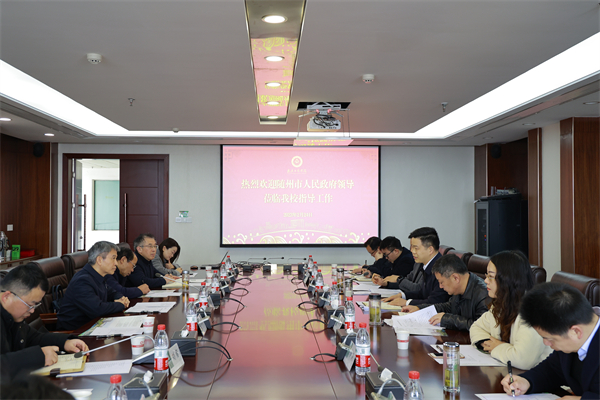 图为尹贝部长介绍学校校地校企合作情况 摄影:孙欢欢