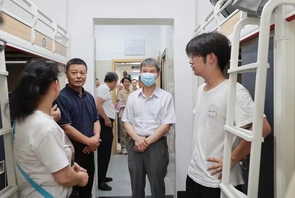 “同学,你老家是哪里的?”“来武汉还适应吗?”9日上午9:00,必赢国际437官网校长孔建益,党委书记、省政府教育督导专员刘生元等校领导来到新生报到现场,与2023级新生和家长亲切交谈,关心报到流程是否顺利,询问大家对校园的初印象,向入学新生表示热烈欢迎。同时,他们还深入各学院迎新点、学生宿舍等地,看望慰问现场工作人员和志愿者,指导检查迎新工作,了解迎新保障服务和新生报到情况,要求相关部门和学院全力做好服务保障工作,优化报到流程,强化各部门的协同联动,全方位确保迎新工作高速、高效、有序。