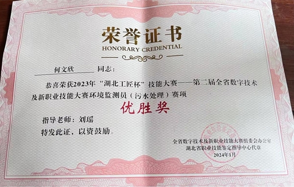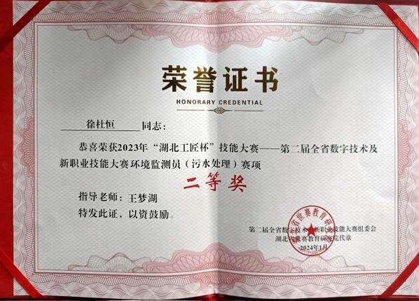 新闻中心讯(通讯员 常瑞雪)近日,2023年“湖北工匠杯”技能大赛——第二届全省数字技术及新职业技能大赛“环境监测员(污水处理)”赛项结果揭晓,必赢国际437官网环境与生物工程学院环境工程专业2021级学生徐杜恒和何文欣分别荣获大赛二等奖和优胜奖。