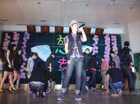 在晚会互动游戏环节,老师组和同学组紧张而又激烈的比赛成为晚会的热点,充分调动了现场的气氛。一首独具特色的最炫民族风歌曲《六口茶》将整场晚会推向了高潮,赢得了观众们赞许的目光。而严敏学长唱的《那些年》也深深地勾起了观众们的回忆,营造了一个温馨又略带感伤的氛围。