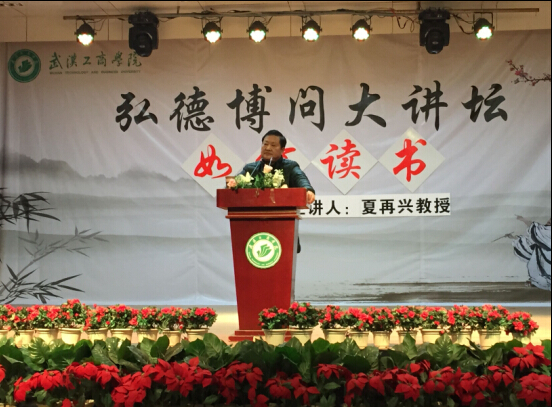 夏再兴教授从“为什么读书”、“读书的一般规律”、“读书的技巧”三个方面展开了生动、深入的讲解。为了告诉学生们为什么要读书,他通过对古今读书观念进行对比,形象地阐述了读书对历代中国人的重要意义。“古人力求‘学优登仕,摄职从政’而读书,过渡到近代,伟人力求‘为中华民族崛起而读书’,而我们当代青年应该为努力实现‘中国梦’而读书”,他由此分析,古人读书的目的是提高自身的生活条件和经济实力,而现代人读书的目的与本质在于“为中国之崛起而读书”、“为中国梦读书”,由此方能实现个人价值和社会价值。