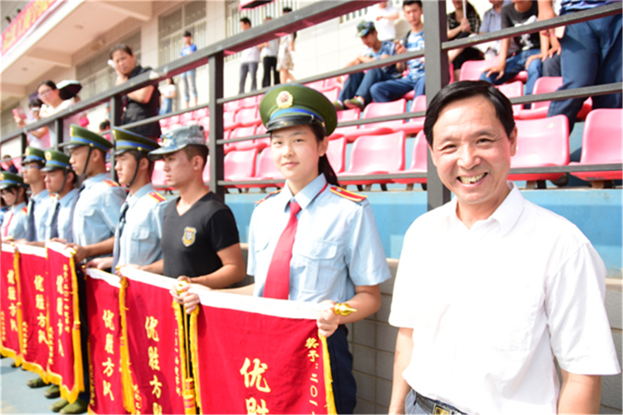 图为陈伟书记和军训团团长检阅方阵