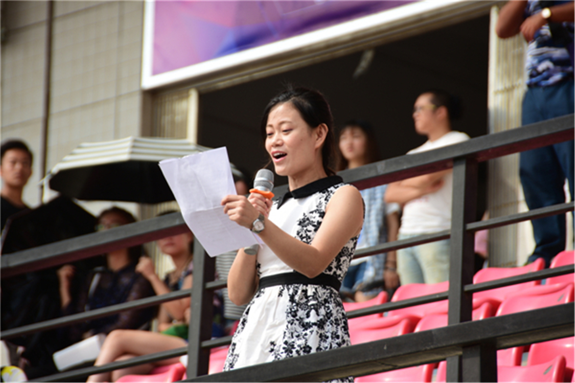开学典礼随后开始。信息工程学院教师薛莲作为优秀教师代表发言,她满怀深情地对新生们说:“作为教师,教书育人是我们无尚的荣耀,为人师表是我们应尽的责任。为了你们的明天,我们愿意奉献今天。”她还教导新生们,在大学里应当树立一个远大的理想并且为之奋斗,但是人生非坦途,只有经历风雨才能见到彩虹。