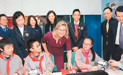 英国教育界人士到上海一所学校参观交流