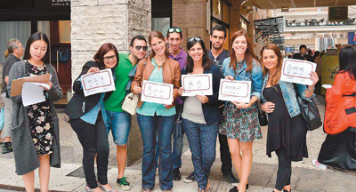 大连外国语大学与葡萄牙阿威罗大学联合创办的孔子学院受到当地学生的热烈欢迎。图为一些学生参加孔子学院举办的体验中国文化活动。