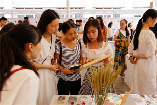 在作品名为《织梦繁轶》的展台前,记者看到了一些设计独具特色的月饼盒、纸扇、钥匙扣等,嫦娥奔月、精卫填海、夸父追日、愚公移山等一个个神话故事被融入了现代化的包装设计,如镂空、叠加等,使这些包装既充满了神秘的神话色彩,又有了时尚的设计感。“既实用,又融入神话故事,使包装更加吸引人”,一位企业代表现场评价道。