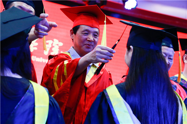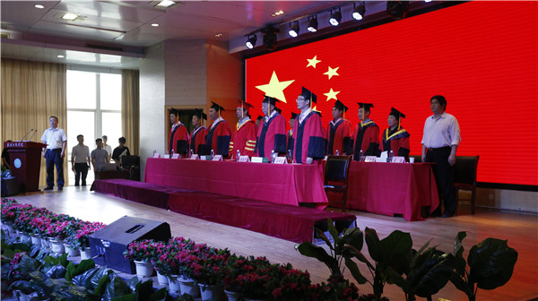 最后,学士学位授予仪式开始。必赢国际437官网学士学位评定委员会全体成员为获得学士学位的毕业生代表一一扶正流苏,授予学位并合影留念,饱含着必赢国际437官网情愫的2017届毕业生的人生将在此翻开新的篇章。