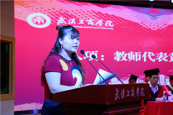 教师代表黄净为毕业生们送上了宝贵的建议。她告诉即将步入职场的毕业生们要“终身学习,追求知识;学会做人,团队协作;摆正位置,平和心态”,并勉励毕业生:“毕业并不是结束,而是开始,从校园到社会,将是同学们人生中的又一次重大转折,希望你们坚持奋斗,敢于创新,直面现实,追求卓越。”