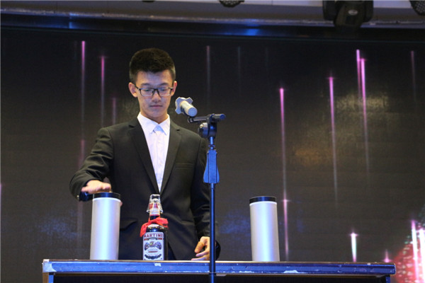 小品 摄影:方涵 魔术 摄影:方涵 来自艺术与设计学院马研的《走完一公里》歌曲串烧激发了现场观众对革命先烈的感恩与崇敬之心。歌颂军人的《献身使命》格斗术表演展现了奋勇拼搏的革命精神,将现场气氛推向又一轮高潮。《点滴爱国心,敬业我能行》和《问责》既弘扬了爱国主义精神,又契合当下党和国家的反腐方略,富有创意。经外学院马研的《龙的传人》将吉他弹唱和书法巧妙结合,赢得了在场观众的阵阵掌声。电商学院马研的诗朗诵《中南海的阳光》带领观众领略了祖国的大好河山,并表明了为中华民族的伟大复兴奋斗与献身的决心。