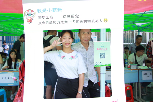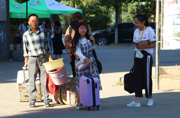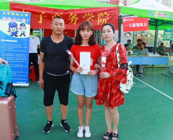 图为大一新生与家长开心合影 摄影:车瑭甜