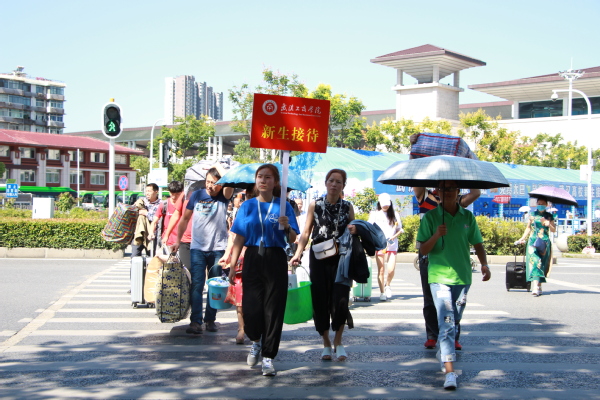 图为志愿者正在武昌火车站指引大一新生及家长 摄影:车瑭甜